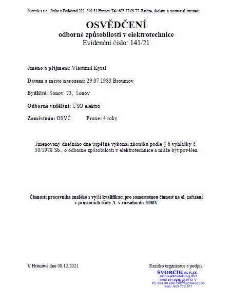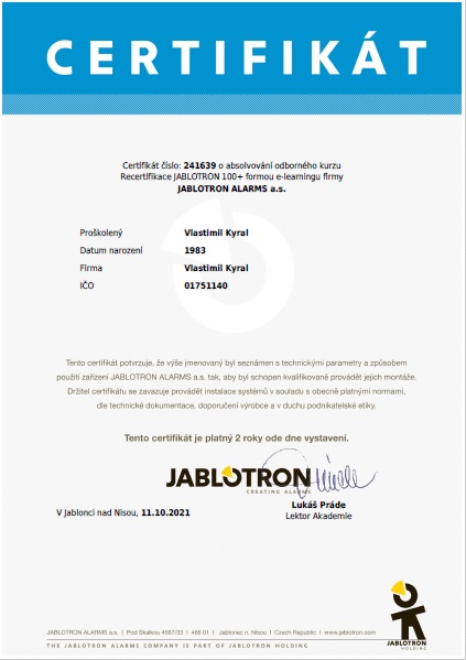 Níže jsou k náhledu získané certifikáty opravňující k montážím.